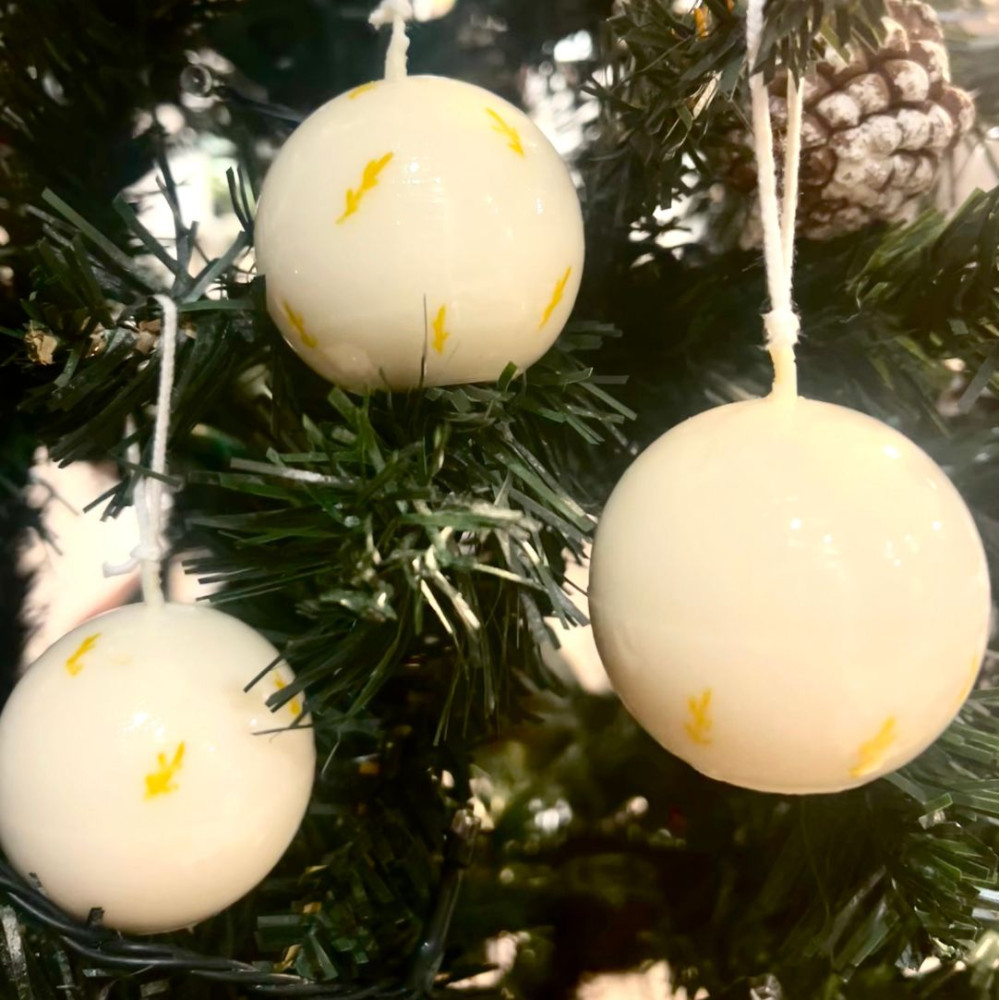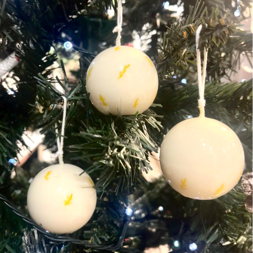 Χριστουγεννιάτικες μπάλες από φυτικό κερί, χειροποίητες και κομψές για κάθε γιορτινή διακόσμηση.