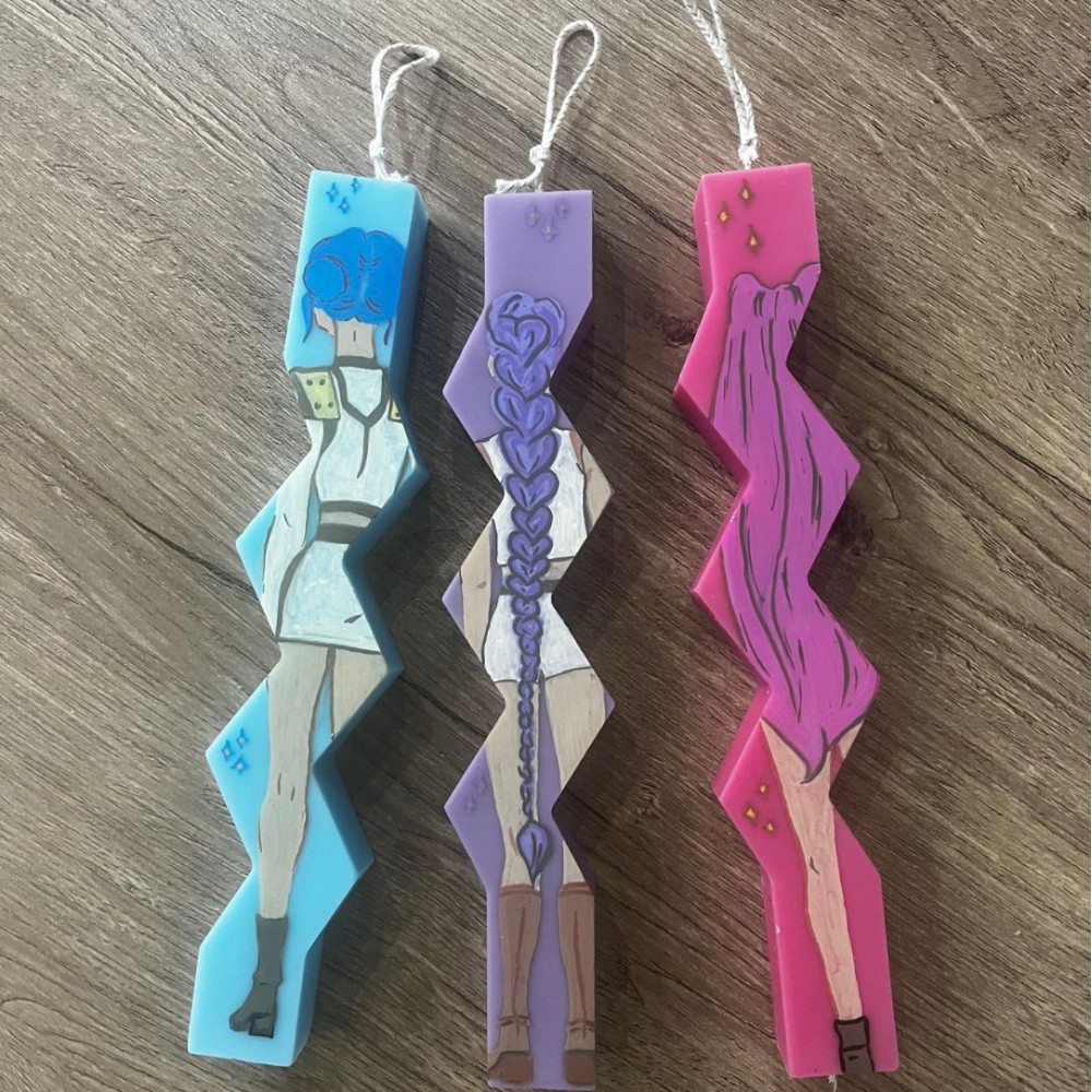 Λαμπάδα με 3d στοιχεία ζωγραφισμένη στο χέρι Demon Huntrix, σε άρωμα Τσουρέκι από 100% φυτικό κερί για ασφαλή καύση.