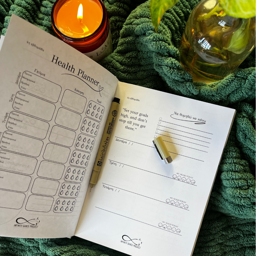 Ένα μοναδικό ημερολόγιο αυτοβελτίωσης χωρίς ημερομηνίες, ιδανικό για χρήση όλη τη χρονιά. Δημιουργήθηκε σε συνεργασία με το Infinity Dance Project της Σοφίας Σπυροπούλου και συνδυάζει ψυχική και σωματική ενδυνάμωση μέσα από ασκήσεις, πρακτικές και πλάνα διατροφής. Απευθύνεται σε όλους όσοι θέλουν να βάλουν στη ζωή τους περισσότερη ισορροπία, ενέργεια και προσωπική ανάπτυξη, ξεκινώντας όποτε οι ίδιοι το επιλέξουν.