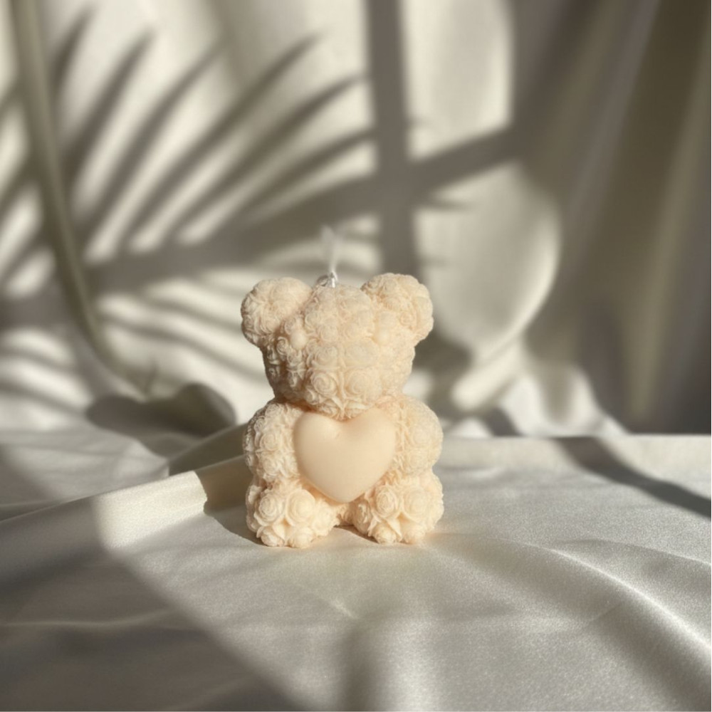 Χειροποίητο κερί αρκουδάκι με τριανταφυλλάκια, φτιαγμένο από 100% φυτικό κερί. Ιδανικό για ρομαντικές στιγμές, διακόσμηση ή ένα ξεχωριστό δώρο. Αρωμάτισε τον χώρο σου με τα κεριά LUM.