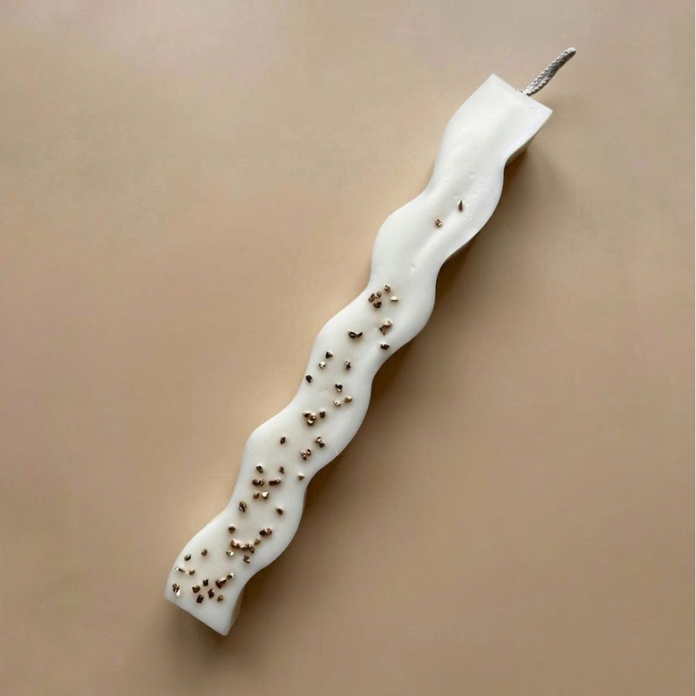 Λαμπάδα με κομματάκια χρυσού σε άρωμα Bamboo Musk από 100% φυτικό κερί για ασφαλή καύση.