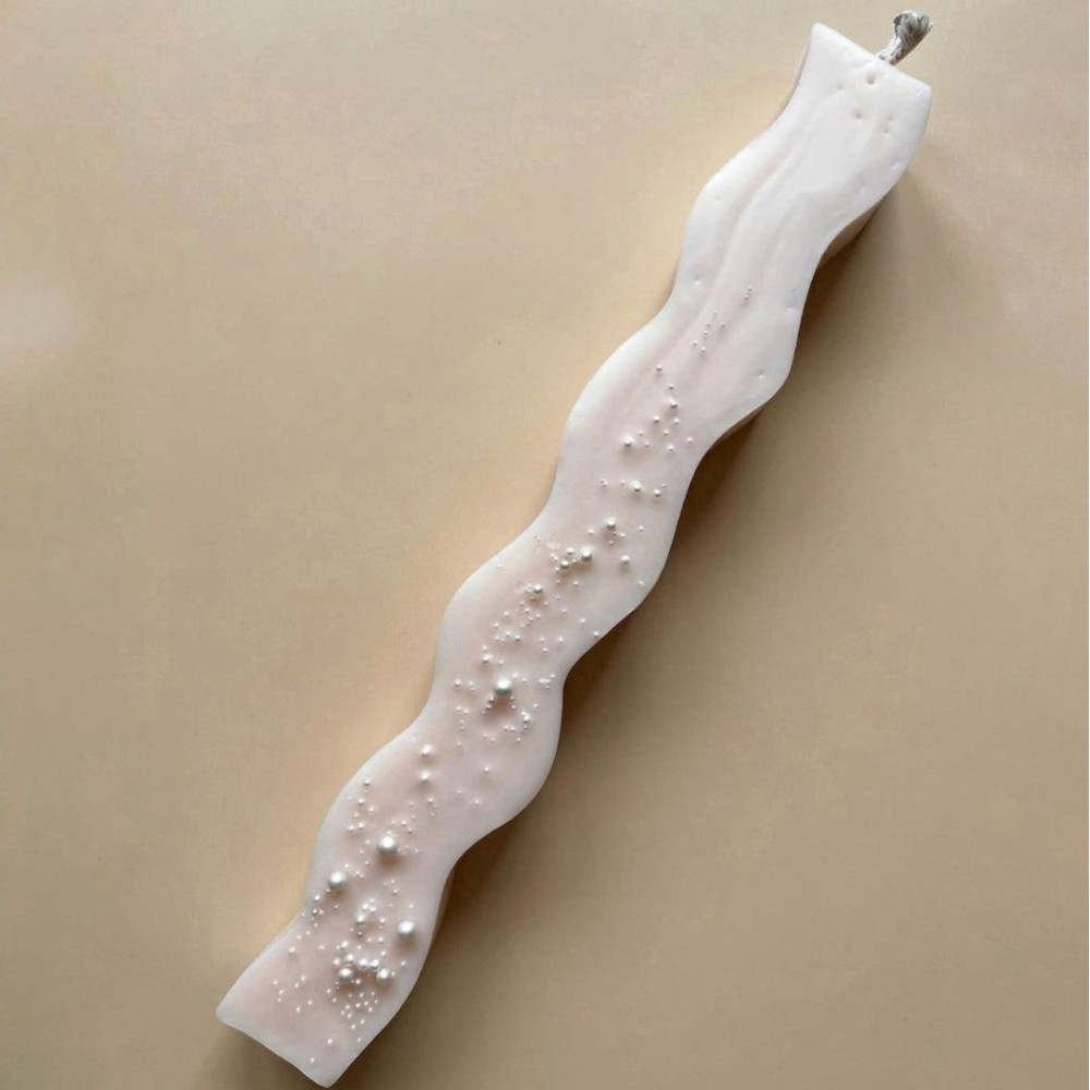 Λαμπάδα με πέρλες σε άρωμα Bamboo Musk από 100% φυτικό κερί για ασφαλή καύση.